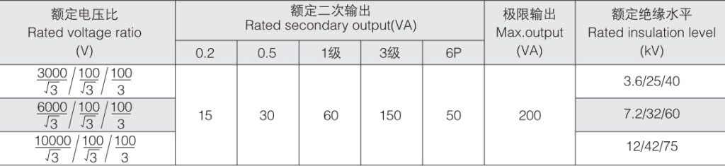 | 额定电压比 | 10/√3/0.1/√3/0.1/3 kV | |